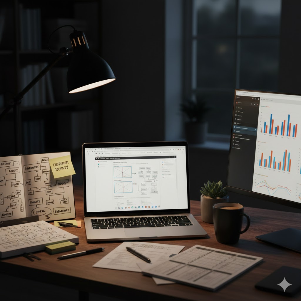 Begrijpen van de doelgroep, klantreis en huidige online prestaties vormt altijd mijn startpunt.